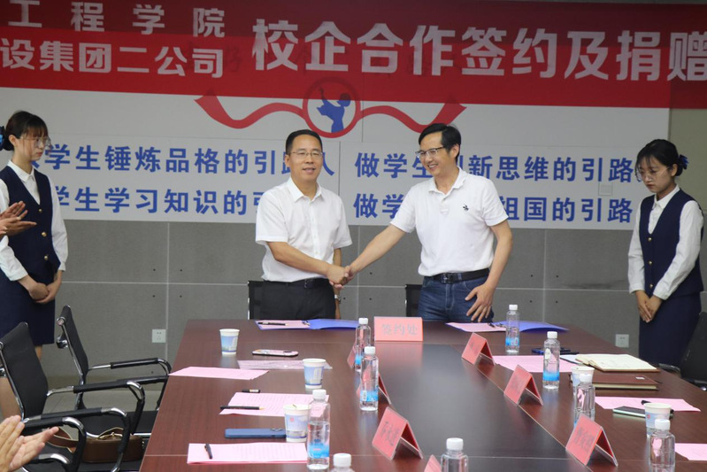 仪式上,徐达奇和乔永进代表双方分别致辞。徐达奇介绍了学院的发展历程、学科专业建设、人才培养、科学研究等情况。他说,在学院成立十周年之际举行签约活动,彰显了学校和企业对校企合作的高度重视,希望今后进一步加强合作交流,共建校企合作平台,加强产教融合,在科学研究、专业建设、人才培养、实习实训和就业服务等方面结出硕果。乔永进介绍了公司规模、主要工程分布情况、未来规划、对毕业生及岗位需求等。他对学院向公司培养输送了30余名毕业生表示感谢,并对入职公司的毕业生的综合素质能力给予高度认可与肯定,希望校企双方在人才培养、科技服务、联合攻关等方面进一步加强交流,达到合作共赢的目标。