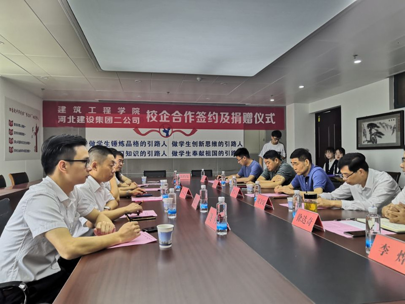 曹安照介绍了校友发展基金会的历程,对河北建设集团第二分公司在我校设立“河北建设奖教金”表示感谢,希望进一步加强与企业单位合作,实现共赢。刘金斌表示学校将更加重视人才培养,加大与用人单位的联系,根据用人单位的建议反馈修订人才培养方案,希望双方能加强合作,深化交流,有针对性地为企业、社会培养更多优秀人才,实现学生、学校和企业多方共赢。
