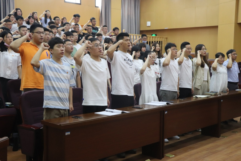 最后举行了重温誓词活动,全体党员在领誓人黄贤君的带领下,举起右手,面向党旗庄严宣誓。现场声音铿锵有力,感情饱满,浓浓的爱党爱国之情激荡着即将离校、奔赴前程的赤子之心。
