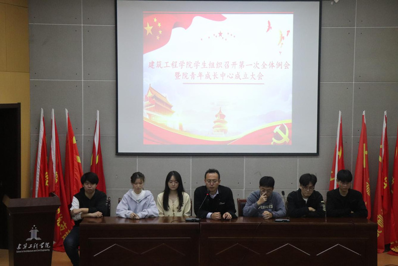 10月17日下午,建筑工程学院在C座三楼报告厅召开学生组织第一次全体例会暨青年成长中心成立大会,院团委委员、辅导员和200余名学生干部参加会议。