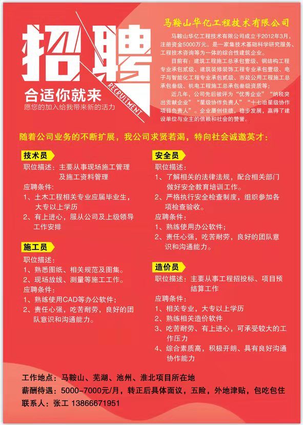 马鞍山华亿工程技术有限公司招聘简章
