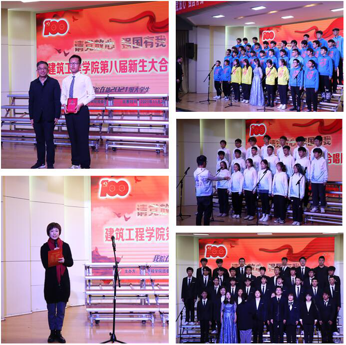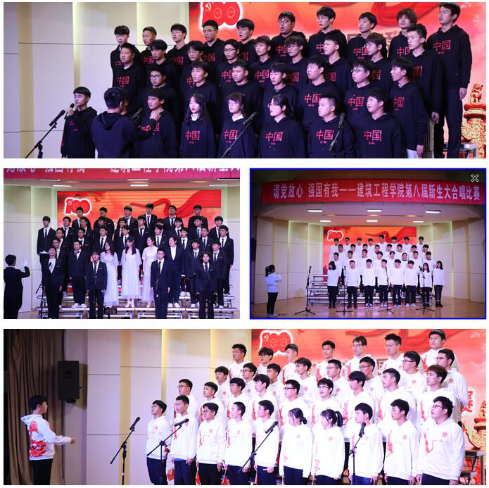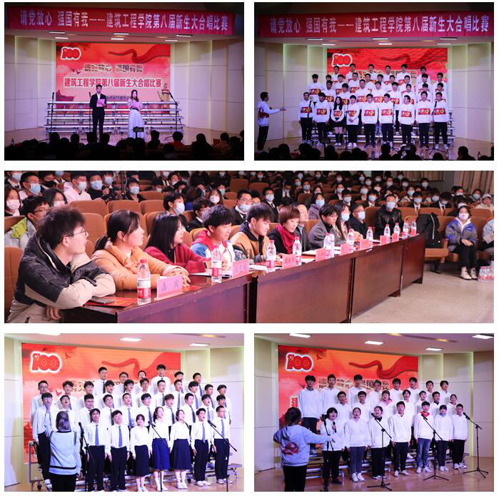 学院2021级10个新生班级参加了本次比赛。比赛现场,同学们以饱满的精神面貌、高涨的热情、深情的歌声,抒发了中国共产党成立100周年的喜悦之情。土木213班同学身姿挺拔、意气风发,通过一曲《东方之珠》讲述了百年沧桑,风雨洗礼,山河统一,兴我中华的壮丽史诗。给排水211班用一首《祖国不会忘记》,赞扬了最美逆行者,他们义无反顾,怀揣满腔爱国为民的热血。给排水212班一首《强军战歌》穿云裂石,更显恢弘气势,展现了听党指挥,能打胜仗的优良传统。土木212班用雄壮的歌声演绎《黄河大合唱》,其深情的朗诵,嘹亮的歌声,唱响了中华民族不屈的精神。工程211班用慷慨激昂的语调,磅礴的气势,唱响《天耀中华》,100年的风雨洗礼,留下的是不变的信仰和不懈的追求,让党旗永远飘扬在人民群众的心中。现场歌声或婉转,或激扬,或振奋,或高亢,整个比赛现场气氛活跃,高潮迭起,气氛热烈。