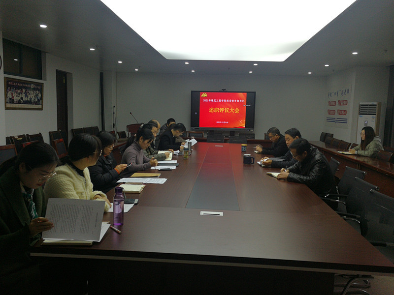 12月16日上午,建筑工程学院党委组织全体支部书记在学院会议室开展2021年度党支部书记述职评议大会,学院党委委员、党支部书记、系部主任、科级以上干部、“两代表一委员”和师生党代表等参加了会议。会议由党委书记张国友主持。