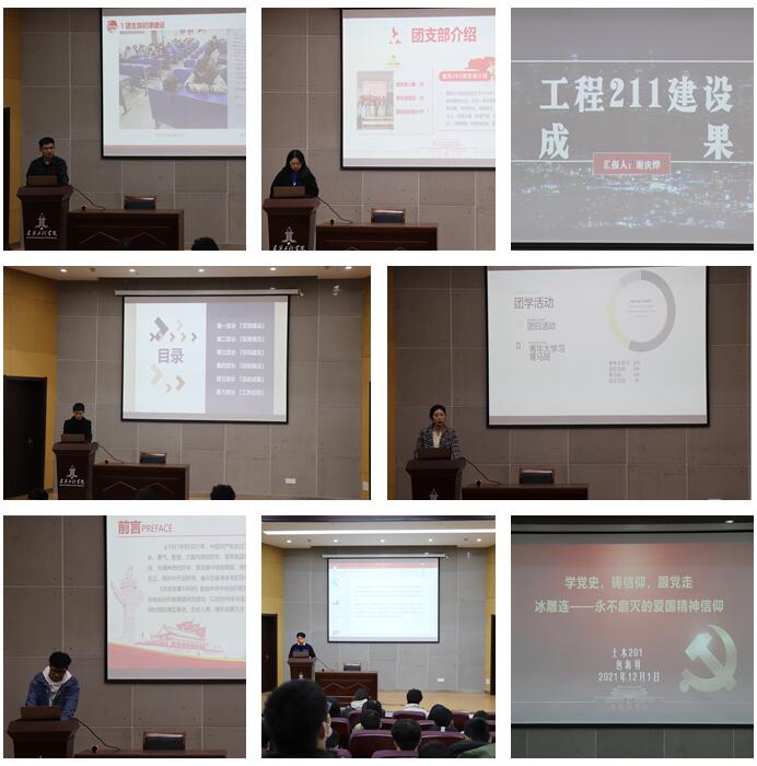 本次活动分为初选、复选和终审答辩三个环节,42个班级团支部报名参选。在“活力团支部”评选环节,10个晋级团支部分别以VCR及PPT等形式,讲述“四进四信”、“青年大学习”、主题团日活动、智慧团建、“班团一体化”运行、“三会两制一课”等方面的建设情况,全面展示班级团支部的“青春活力”。在“魅力团支书”评选环节,晋级的10名团支部书记以“深学笃用习近平新时代中国特色社会主义思想、党的十九大和十九届历次全会精神”为主题开展微团课,讲述了建党100年的光辉历程以及常态化疫情防控中青年大学生主动担当的“青春”使命。最终,给排水202班团支部、建筑202班团支部、工程212班团支部获得“活力团支部”称号,团支部书记包海羽、周俊杰、占昌健获得“魅力团支书”称号。