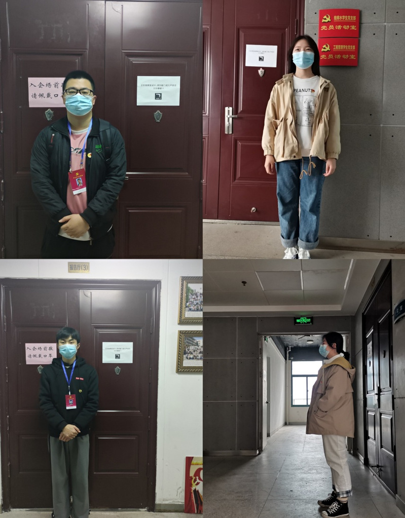 复试考场的门上张贴着“研究生网上复试,请勿大声说话!”、“研究生复试中,请勿扰!”等温馨提示;复试时,各位学生党员耐心守护在场外,维持秩序,并随时准备应对各种突发情况。党员志愿者们的精心准备和暖心服务,为考研学子们打造了属于他们的“逐梦空间”。