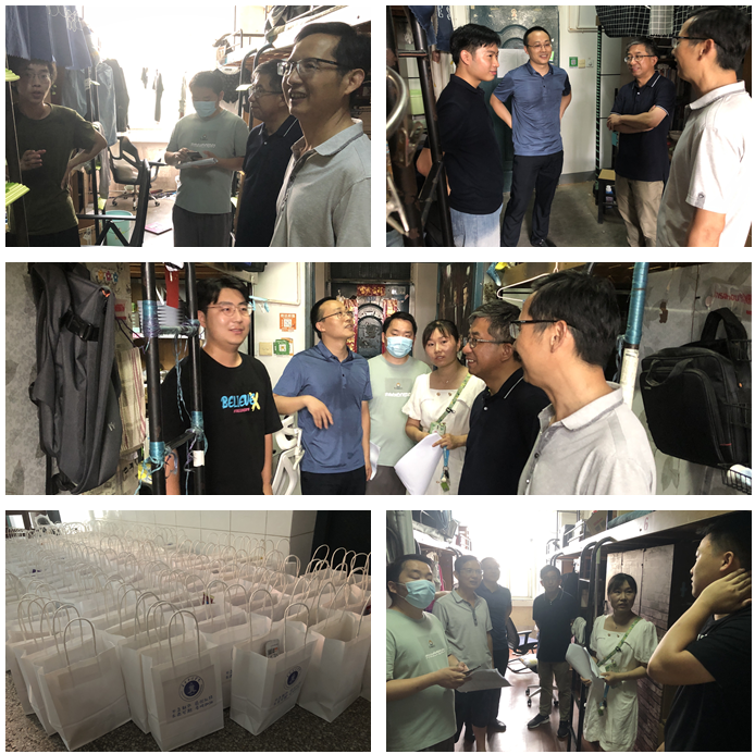 走访期间,学院负责人表达了对留校参加科研、学科竞赛、复习考研学生的亲切慰问,叮嘱同学们要科学制定计划,认真复习备考,充分利用好暑假复习的黄金时间,真正做到学有所获,全身心投入备考、备赛。要严格遵守芜湖市及学校新冠肺炎疫情防控工作要求,坚持“非必要不离校”、“非必要不离芜”,严格履行请假审批手续,按要求做好核酸检测,坚持不间断打卡,落实“日报告”、“零报告”制度。要注意学生宿舍安全和安全稳定工作,保持信息畅通,及时向学院反映意见和建议。老师们为同学们送上了精美的爱心大礼包,鼓励他们做好个人防护,注意个人卫生,保持宿舍整洁卫生,勤通风透气,积极配合属地和学校的疫情防控工作。