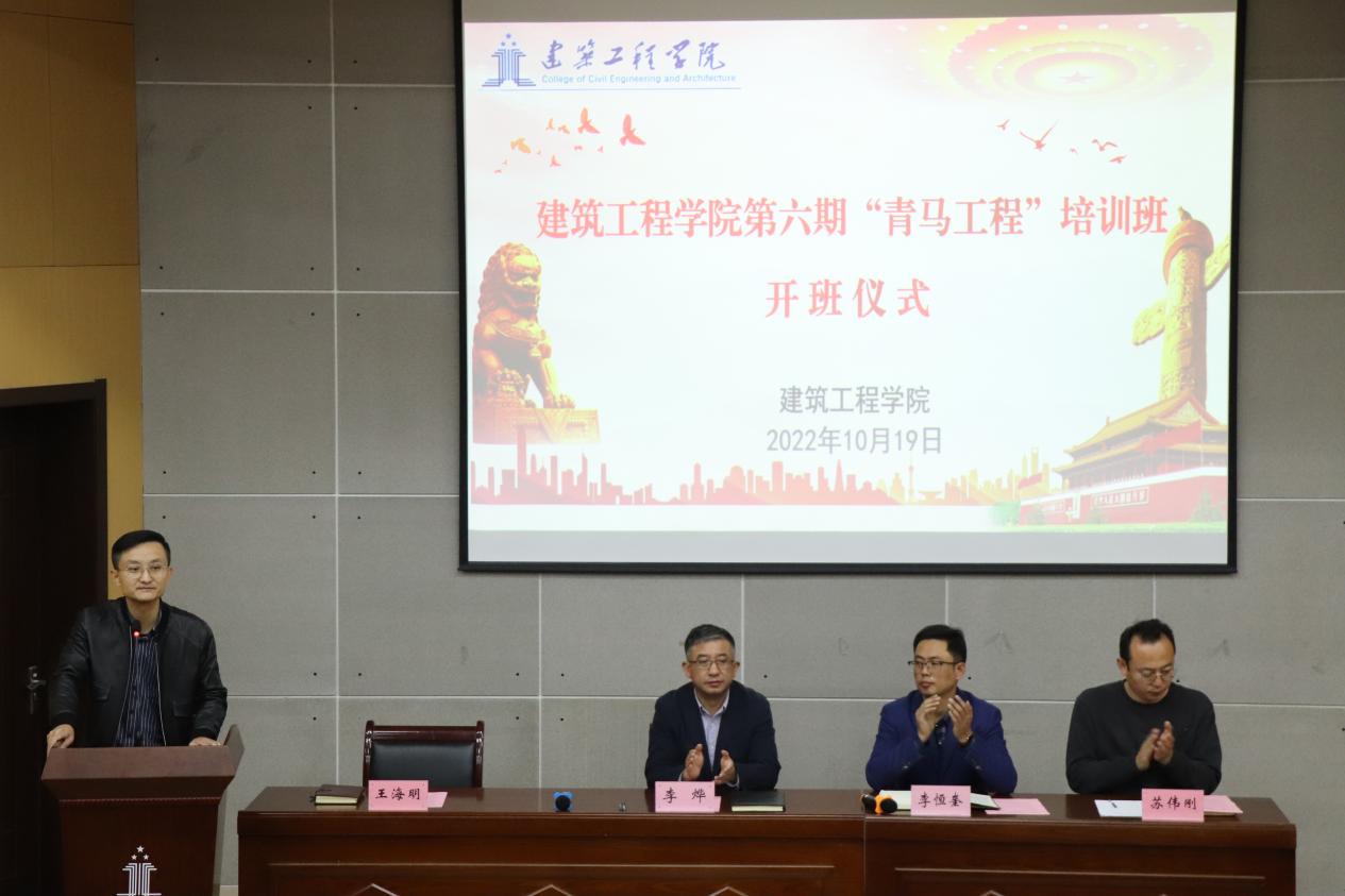 为认真落实学校党委“三全六专”育人工作要求,让学生“正”起来,进一步加强学生干部队伍建设,提高广大青年的政治素质、理论水平和工作能力,10月19日下午,建筑工程学院第六期“青马工程”培训班开班仪式在C座三楼报告厅举行。校团委副书记兼党委学工部副部长李恒奎、建筑工程学院党委书记李烨、院团委负责人、辅导员和100多名学员参加。