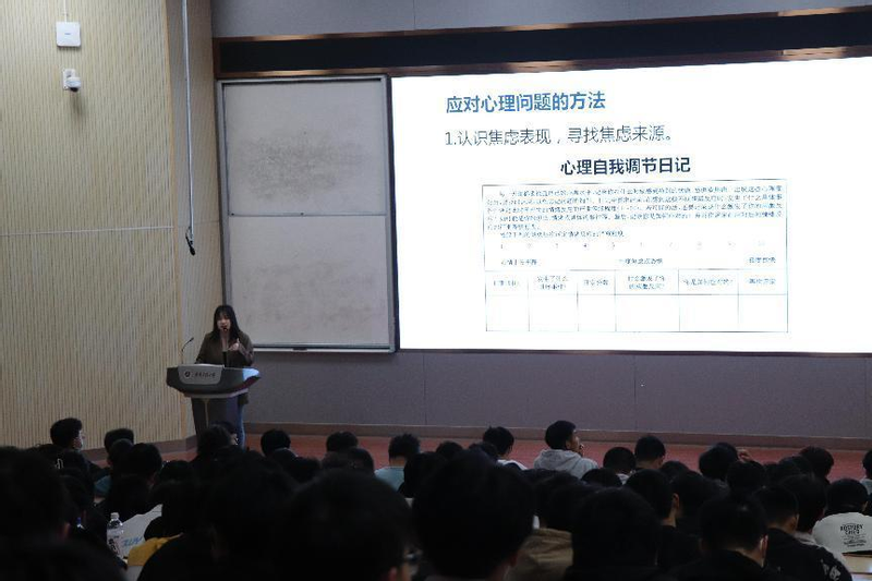 讲座中,李梦圆向大家详细讲解何为心理健康、评判大学生心理健康标准等知识,重点分析大学生常见的焦虑和抑郁两种心理情绪,通过专业讲授、案例分析、量表测试等方式,介绍焦虑和抑郁症状的识别、过度焦虑和过度抑郁的调适方法,从认知、情绪、躯体、行为四个方面分享调适情绪的方法和技巧,并提醒同学们注意关注个人心理健康,懂得适时寻求专业心理帮助。