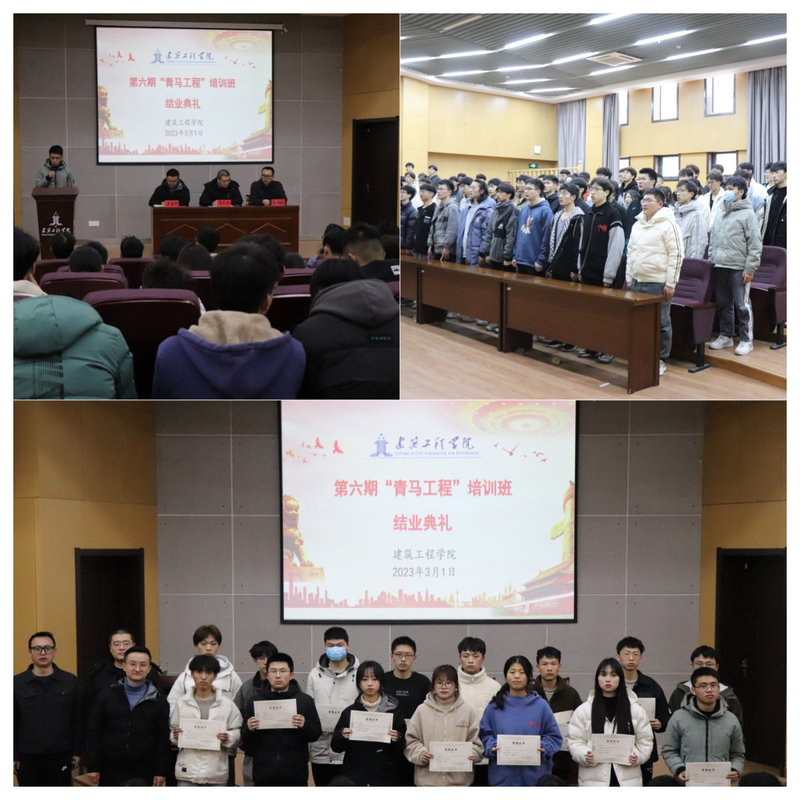 为认真落实学校党委“三全六专”育人工作要求,让学生“正”起来,2023年3月1日下午,建筑工程学院第六期“青年马克思主义者培养工程”培训班结业典礼在C座三楼报告厅举行,院党委副书记张礼波,团委负责人、班主任、全体学员参加了本次典礼。