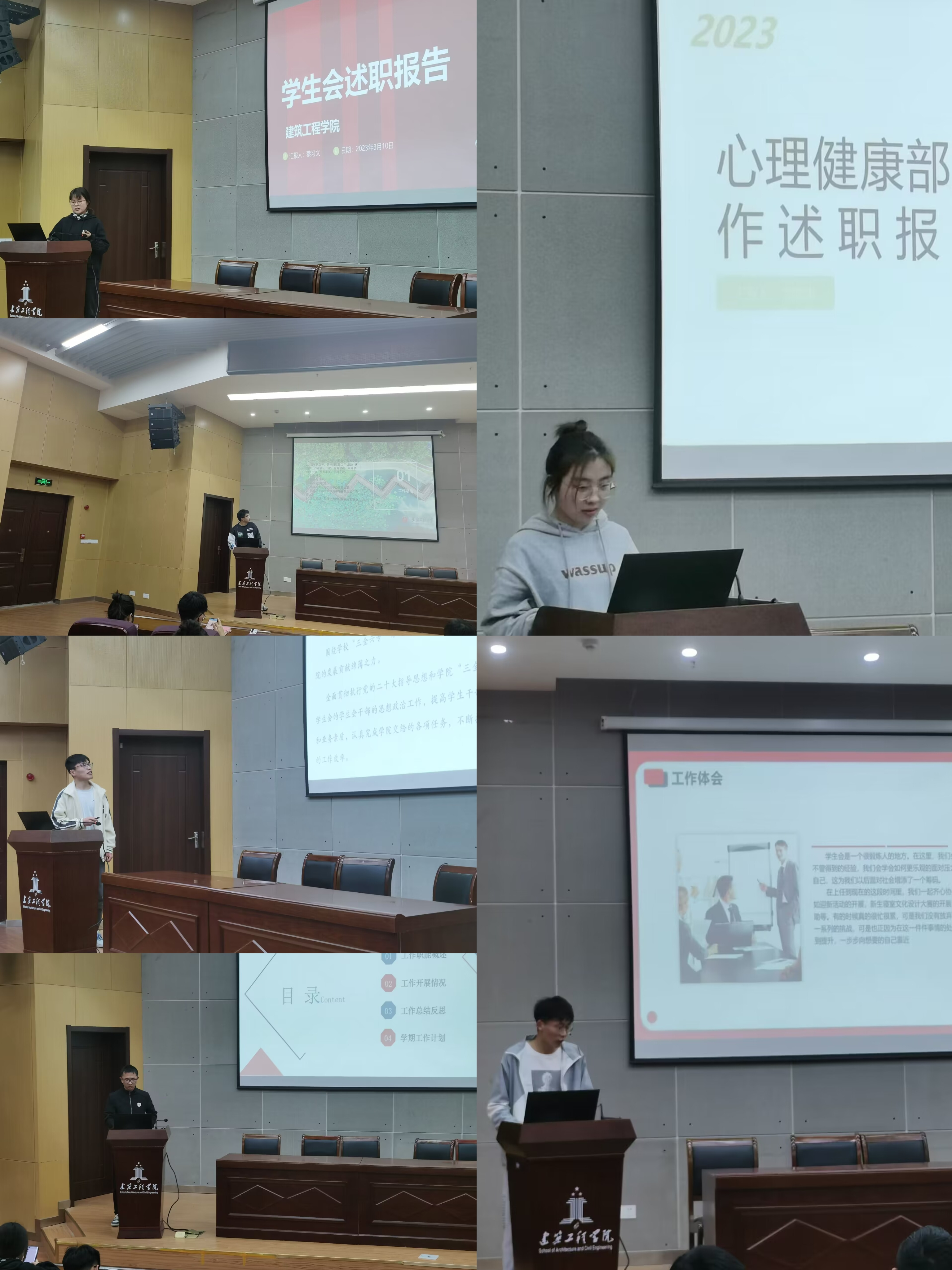 为促进“三抓”和“三全六专”工作落实落细,3月14日,建筑工程学院在C座报告厅召开2022-2023学年第1学期学生会工作述职评议会,。学院团委负责人、辅导员参加会议,主席团成员及各部门主要负责人作述职报告。