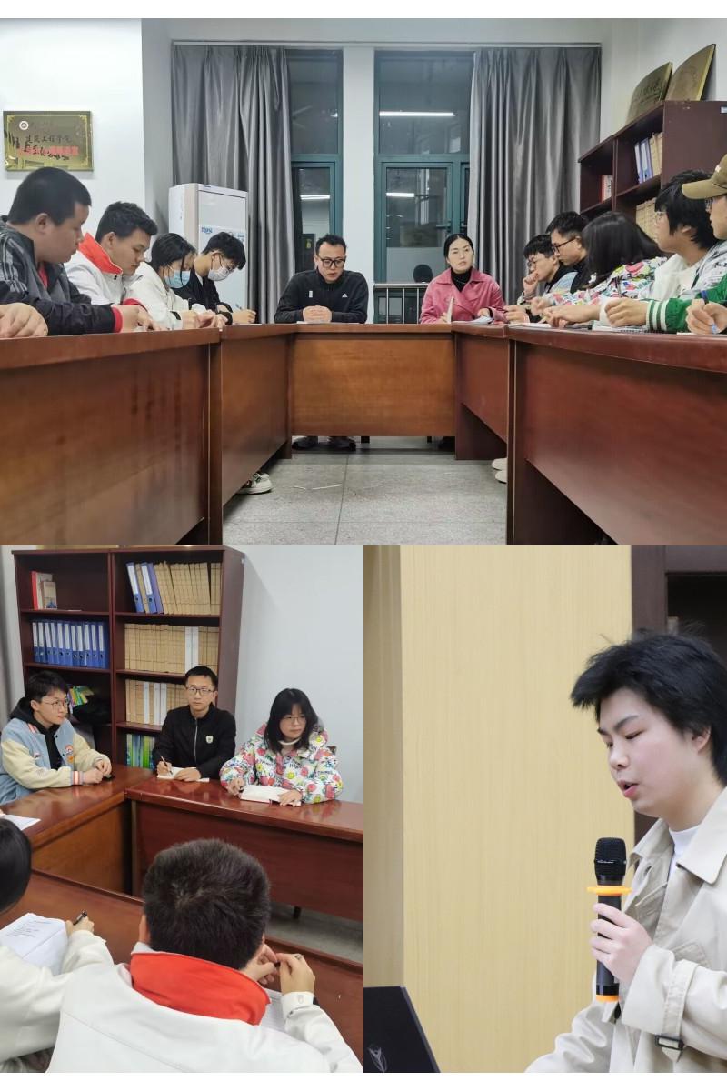 3月16日晚,建筑工程学院召开理论中心组学习暨22级班长团支书例会,进一步落实落细学校“三抓”和“三全六专”工作要求。院团委书记苏伟刚,团委副书记(兼)、辅导员赵恒芳,团委副书记(学生)储军豪,土木18级校友黄涛,土木22级各班长团支书、院学生会主席团参加学习。
