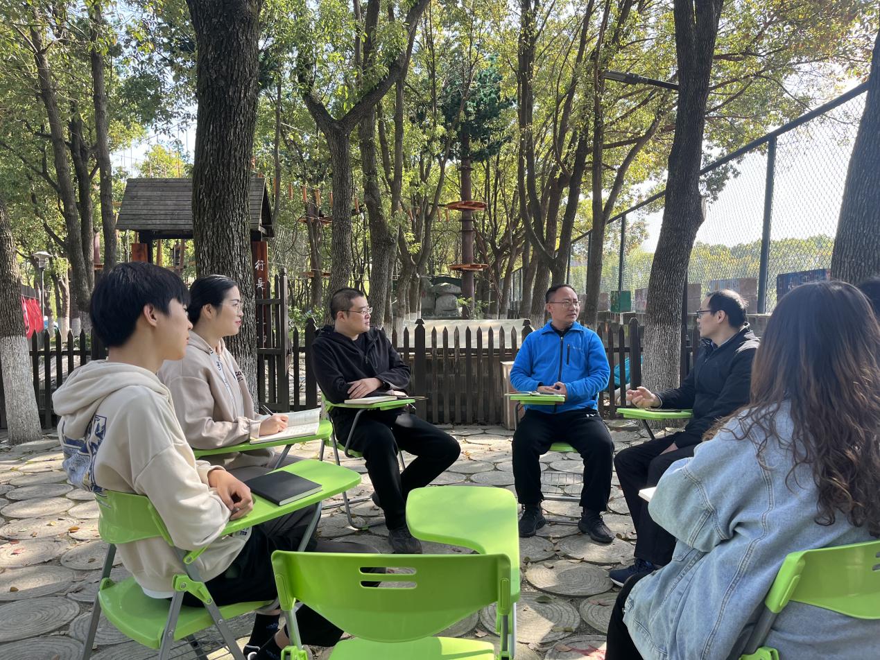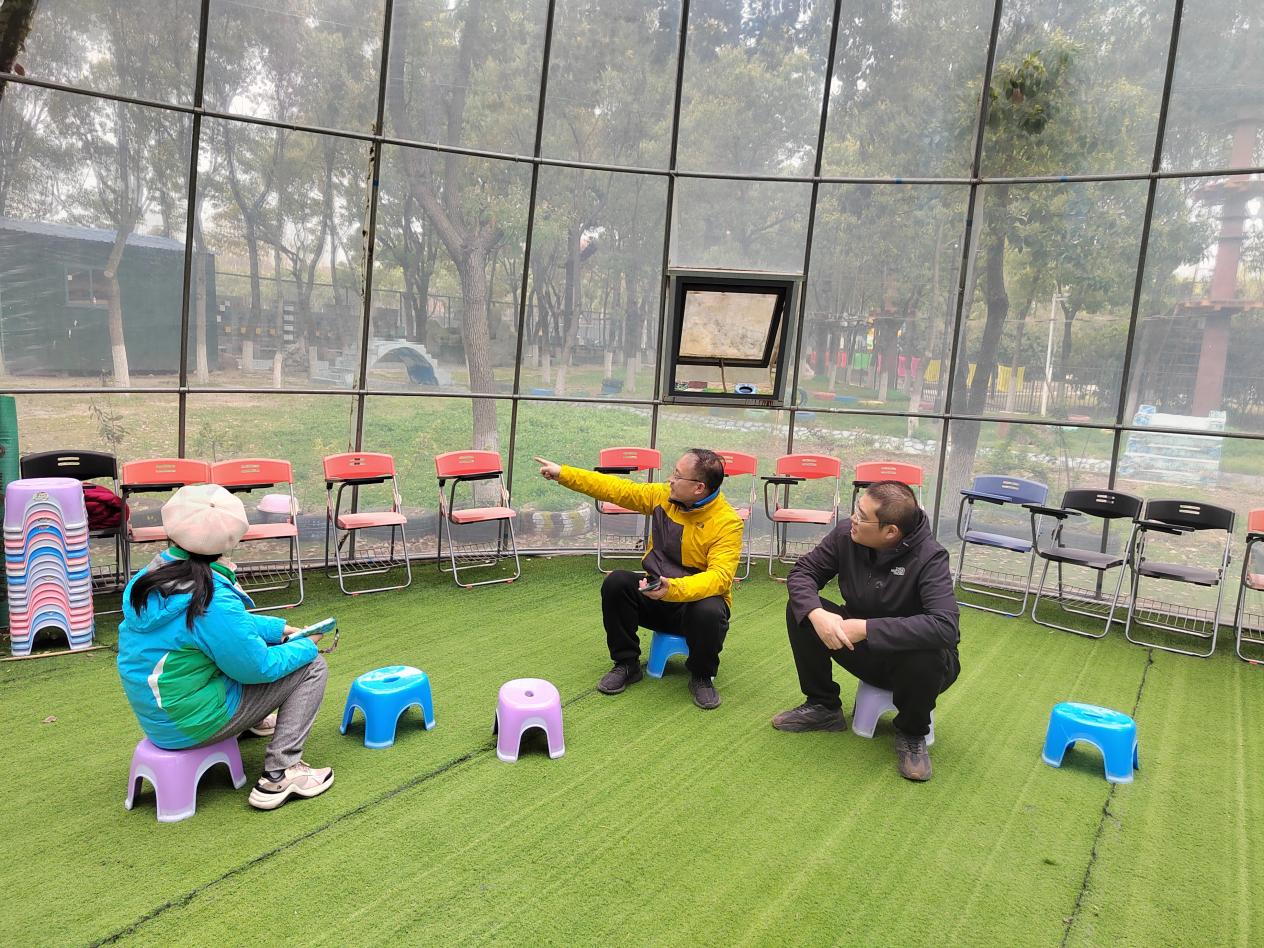 赵恒芳从项目实施周期与学生课程时间与大家进行沟通。王政、葛明罡就学生专业性的技能方面给出建议。讨论会后,建筑工程学院选派建筑学专业教师俞梦璇进行现场勘察,俞梦璇从树屋外观与功能性的角度与薛保红进行沟通交流,确定初步方案的实施区域,将结合建筑初步的专业课程开展“树屋”方案征集活动。
