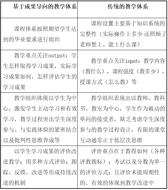 表 1 基于成果导向与传统教学体系的差异