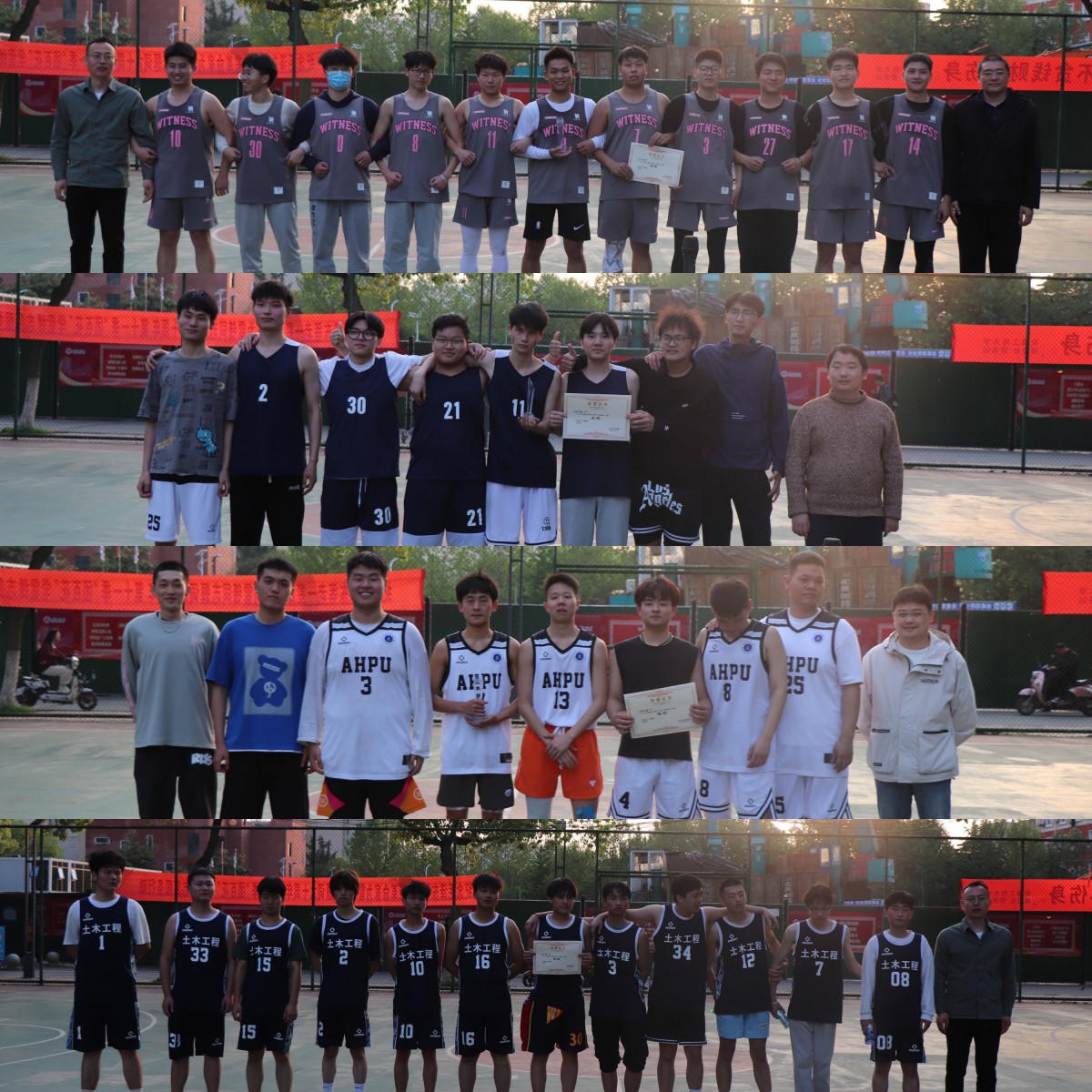 比赛结束后,在场教师为四支参赛队伍颁奖,并与球员合影留念,一起记录着赛场上的美好瞬间。张礼波鼓励青年大学生“壮”起来,多参加体育锻炼,做到劳逸结合,以“三全六专”工作为统领,积极参与学校的育人工作,做到育人、育已、育才相结合。