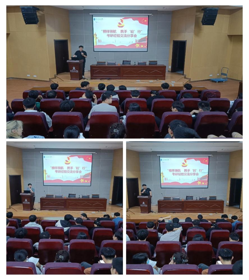 考研经验交流与技巧分享环节,拟录取至成都理工大学、南京航空航天大学和哈尔滨工程大学的孙意成、周勇和彭仕宇三位党员同学,分别从考研院校与考研专业的选取、考研范围、考研方法、考研时间规划、资料收集以及备考心态的调试等方面进行全面、细致分享,为备考同学指明了复习方向,也传授了宝贵的经验教训。