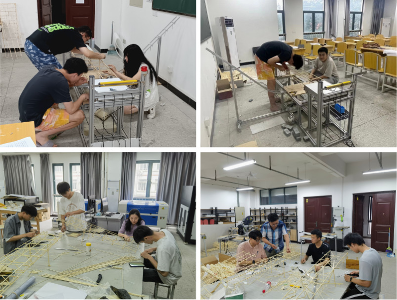 据悉,我校于6月3日举办结构设计竞赛校赛,并推选三支队伍代表我校参加本届省赛。在过去的一个月中,三支队伍精心准备,不断改进模型方案、完善制作手法、精简材料自重、追求模型极限。在本届省赛中,来自安徽省各个高校的队伍带来了多种桥梁模型的方案,包括桁架式、桁架梁组合式、张弦式、斜拉式、拱式、装配式等结构型式,在杆件加工,节点构造、竹材预处理、支座形式、预应力、预拱度等方面提出了很多创新的设计和工艺,并展现了高质量的制作水准。我校师生通过参加本届省赛,开拓了视野思路,学习了很多优秀作品的设计理念和制作手法,这将为我校队伍参加今后的结构设计竞赛提供宝贵的经验。