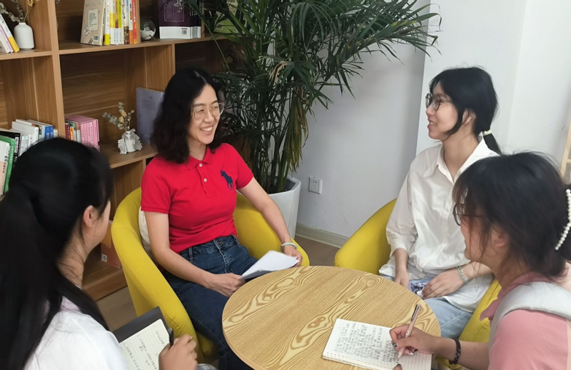 与此同时,耿玉洁老师常怀仁爱之心,积极投身于社会服务事业中——2008年汶川大地震,她作为安徽首批志愿者义无反顾奔赴灾区开展救援活动。在救援活动中,她尽心竭力帮助灾区人民,不叫苦,不喊累,为救援奉献出自己的全部力量;2020年新冠疫情暴发,她积极参加教育部CCNU心理援助热线服务,全身心投入社区心理疏导工作,为保障广大人民的心理健康不断前行。在她的身上,我们看到了她春风化雨的谆谆教诲和立德树人的使命担当。“爱是解决一切问题的钥匙”,耿玉洁老师这样说。这句话既是她从事教师工作多年的感悟,亦是她在无私奉献过程中的行为准则。在访谈过程中,成员们深切感受到了耿老师对学生心理健康的高度重视及其奉献精神。
