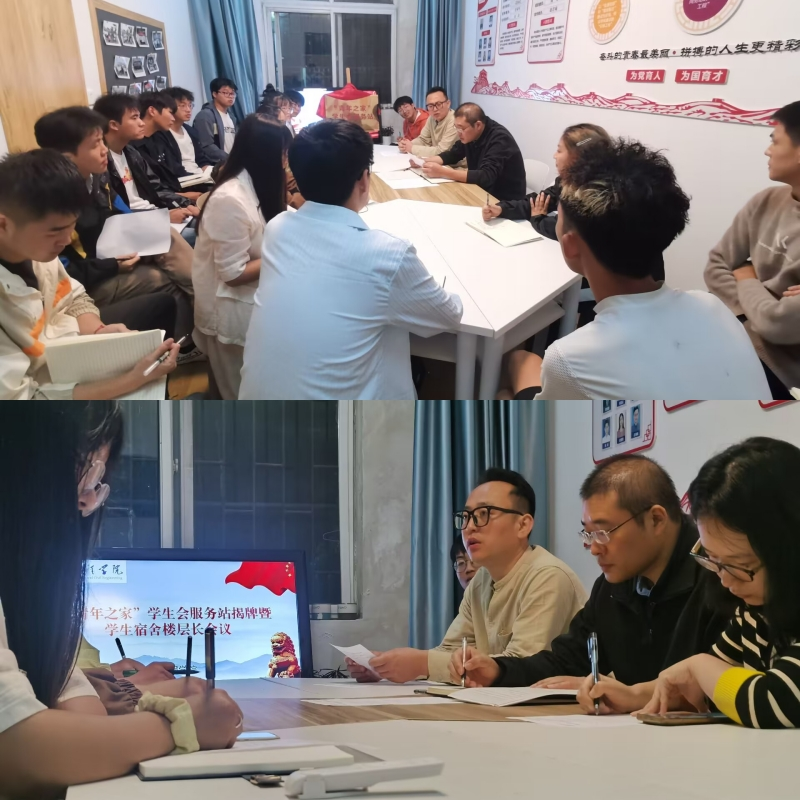 为进一步推深做实“三全六专”育人实践工作,切实发挥和谐社区工作站倾听学生、服务学生的育人作用,10月22日晚,建筑工程学院在“砼”心“筑”魂学生服务中心举行“青年之家”学生会服务站揭牌,并召开学生宿舍楼层长会议,学院党委副书记张礼波,校团委组织宣传科科长孙琳瑶、院团委负责人、学生会主席团成员、楼层长、学生代表参加会议。会议由苏伟刚主持。