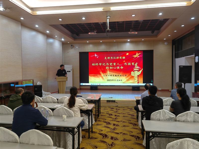 参观考察后,全体党员开展了集中理论学习,在理论学习的基础上,支部书记黄博以“始终牢记为党育人、为国育才的初心使命”为题给全体党员讲党课,全体党员围绕如何把理论学习转化为推动土木工程专业高质量发展、如何做好工程教育认证专家进校考察等内容进行了专题交流研讨。
