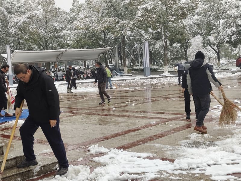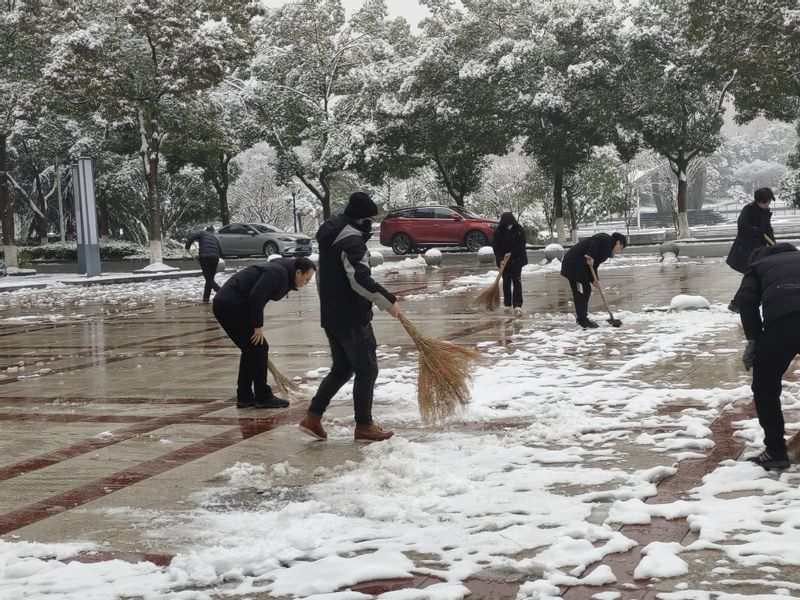 突如其来的大雪使美丽的江城芜湖银装素裹,披上银装的RayBetApp官网下载 校园美不胜收。在享受大自然带来无比美感的同时,积雪堆积、路面湿滑给师生出行和生活带来诸多不便。为了确保师生校园出行安全、切实展现师生党员在需要的关键时刻挺身而出的责任担当,同时以切实行动给新发展党员上一次生动活泼的实践课,学院党委积极响应学校“清扫积雪行动”倡议,迅速动员部署,把师生党员动员起来,发挥师生党员的先锋模范作用。12月19日上午,学院党委组织党员,开展了以C座实验楼为中心的校园清扫积雪志愿服务行动,以守护师生平安出行。
