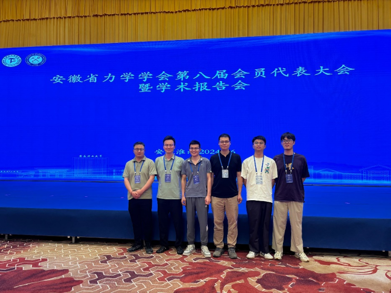 7月5日-7日,安徽省力学学会第八届会员代表大会暨学术报告会在安徽淮南隆重召开。此次会议旨在为了交流我省力学学科的研究成果,促进我省力学学科建设,便于更好地开展我省力学学会工作。我院力学教学部教师葛仁余、汪超、廖斌、赵航、杨永育与研究生马亮亮、姚乐参加了此次交流研讨会。