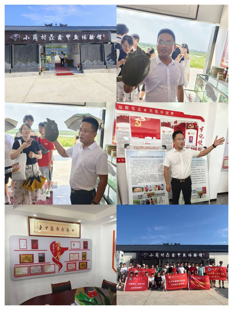 “碧水绕村流,清波养甲鱼。”上午的最后一站,小岗先锋队来到了垚鑫甲鱼基地。这里,碧水清波,环境优雅,是甲鱼生长的天然乐园。基地负责人徐文庭介绍了甲鱼的养殖过程和营养价值,并且满头大汗的说到:“自己富不算富,大家富了才算富,我要带领乡亲们一起致富,这样的人生才更有价值。” 听到这,小岗先锋队的队员们无不被徐文庭的信念和勇气所折服。