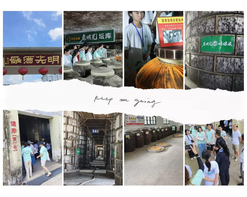 “欲问美酒何处香,且随先锋队入明光。”先锋队的首站是历史悠久、酒香四溢的明光酒厂。未进酒厂,先闻其香,那浓郁醇厚的酒香仿佛是岁月的低语,诉说着千年酒文化的传承与创新。队员们踏入酒厂,犹如走进了一座酒文化的殿堂。古老的酿造工艺与现代的生产设备交相辉映,正如“沉舟侧畔千帆过,病树前头万木春”,传统与现代在此完美融合。大家仔细聆听着工作人员的讲解,亲眼目睹了粮食如何在时间与技艺的魔法中化为一坛坛美酒,深深感受到了工匠精神的魅力。