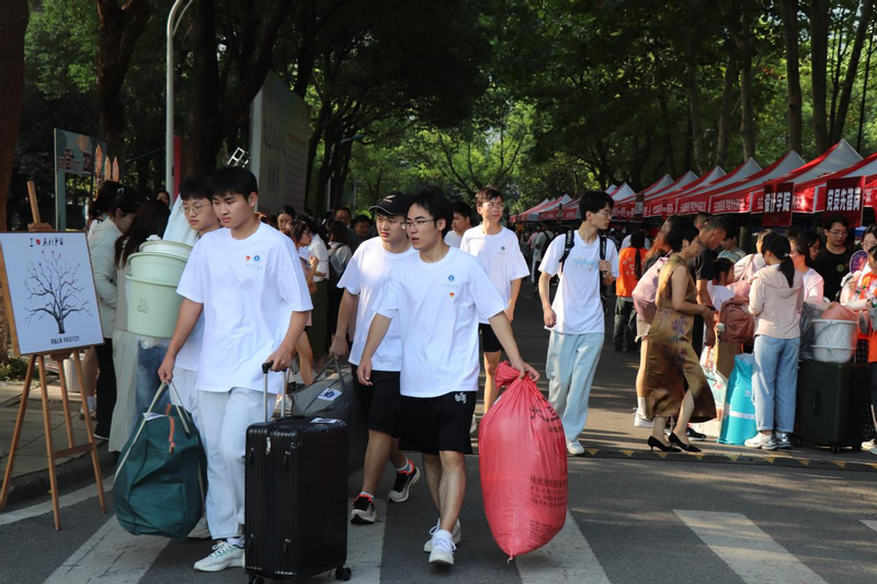 尽管天气闷热、热浪袭人,但党员先锋队队伍们无所畏惧、不仅提前到底迎新现场,随时准备为新生及其家长提供有准备的服务。在迎接新生报到的过程中,学生党员佩戴党徽、个个精神抖擞,微笑服务,哪里有需要哪里就有党徽闪耀。他们有的承接新生沉甸甸的行李箱、有的跑前忙后引导新生办理报到手续、有的为新生家长送去一份清凉茶、为新生及家长答疑解惑,有的帮助新生入住校园“新家”等。他们始终秉持“尚德 敏学 唯实 惟新”的校训精神,把“清凉”与“愉悦”送给新生及其家长、把“炎热”“辛苦”留给自己,切实以实际行动告诉学生家长,“请你们放心,这里有我们!”