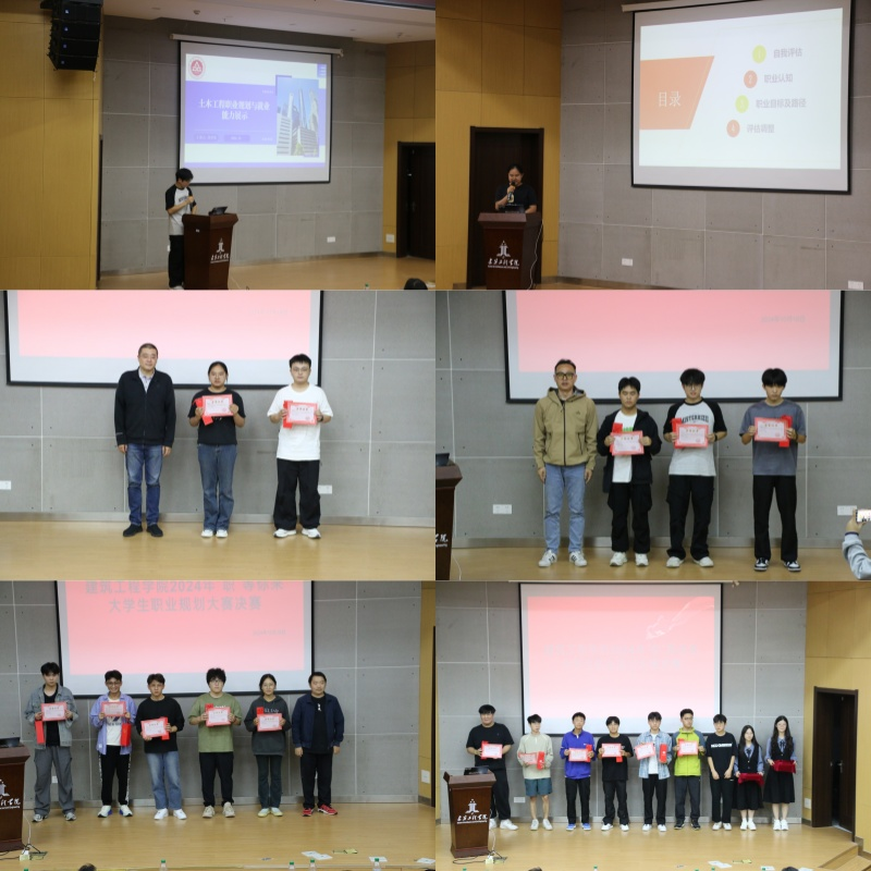 本次活动分为初赛和决赛两个阶段,2024级新生全覆盖,其他年级学纷纷参赛。赛场上,选手们结合详尽的生涯发展报告,自信满满地陈述着他们的职业规划蓝图,从自我评估的深刻剖析,到职业目标的清晰设定,从计划的周密制定,到潜能的深度发掘,每一步都闪耀着智慧与决心。经过2个小时的激烈角逐,工程212柯俊豪、土木222陈鑫蕊获一等奖:24级研究生陈世勋、土木244廖泽、土木232陈梓昕荣获二等奖;工程212叶昀天、土木214陈一豪、给排水242王汐、土木241万嗣凯、工程221武昊宇荣获三等奖。赛后,张礼波对大赛做了总结点评,他指出大学生职业规划要很好的结合学校的“三抓”理念和“三全六专”育人工作要求,通过比赛要挖掘自己个性特质,明晰自身存在的资源优势,重新认识自己的价值,明确职业发展目标和职业理想,为自己的未来指明前进的方向,希望同学们在美好蓝图的指引下,勇于实践,不断完善自己,实现心中的梦想。