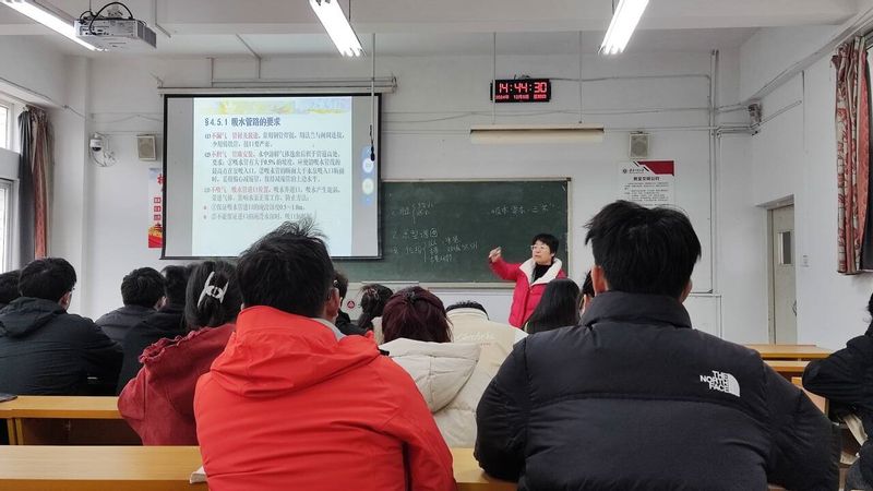 和蕊老师本次教学课程内容是《泵与泵站》第四章吸水管路与压水管路。和老师采用超星学习通线上与线下相结合的授课模式,通过上节课知识点回顾,引发同学们的思考,导出本章节的学习内容。和老师以泵房平面布置及吸水和压水管路的重要性,逐渐过渡到本章节的重点内容“吸水管路和压水管路的要求”。在授课过程中,和老师有效地引导学生主动跟随教师的思路进行思考,和老师用多媒体的图片方式将管路布置方式完整呈现并分析,由浅入深,使抽象变得直观易懂,学生整堂课注意力集中,积极参与与教师的互动交流,获得感满满,教师对课堂的掌控力也得到了充分展现。