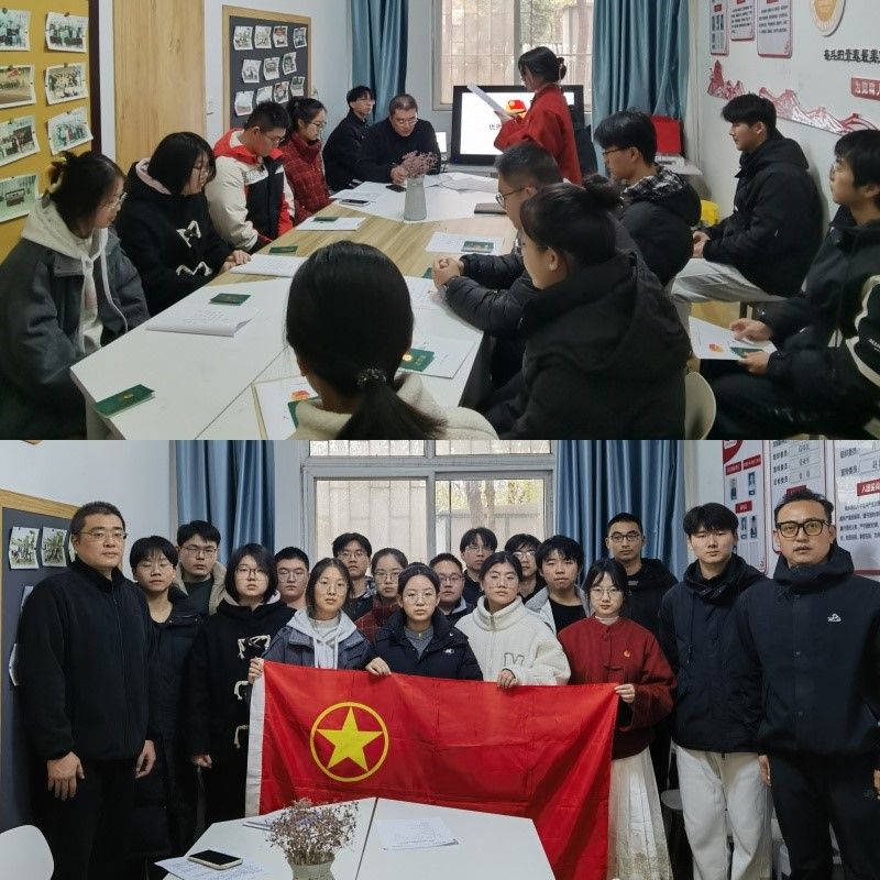 土木233陈梓昕作为新团员代表发言,表示今后会继续以积极进取的态度去学习、工作、生活,努力使自己成为一个优秀的共青团员,在学习和生活中起到模范带头作用,用热情去带动和影响周围的同学。优秀团员代表给排水221孙敏书向新入团的同学们表示最热烈的祝贺和最诚挚的欢迎,希望新团员紧跟党走,提升素养;牢记团章,担当作为;学以践行,德以修身。仪式结束后,院团委中心组、功能型团支部、14名新团员一起召开了中心组理论学习,进一步筑牢新团员的理想信念,服务青年大学生的成长成才。