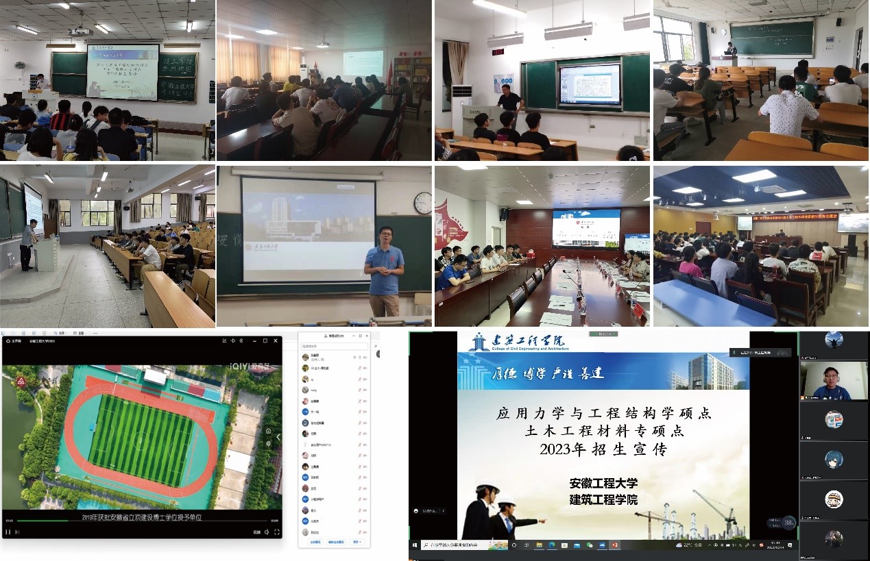 学院研究生招生宣传组克服疫情影响等不利因素,采用线下与线上相结合的方式,分别前往安徽科技学院、皖西学院、黄山学院、铜陵学院、马鞍山学院、皖江工学院、蚌埠学院、安徽新华学院、安徽省水利水电技术学院、安徽交通职业技术学院等10所高等院校进行招生宣传工作。详细介绍了学校发展现状、招生政策和学院硕士点的办学条件、招生要求、专业特色、导师科研情况等内容,特别是今年新增的“土木工程材料”专业型硕士点,介绍了报考要求,初试和复试的专业课考试科目、该门专业的研究方向、及今后的工作就业方向,与学生充分沟通交流,并对有报考方面的问题进行了详细解答。