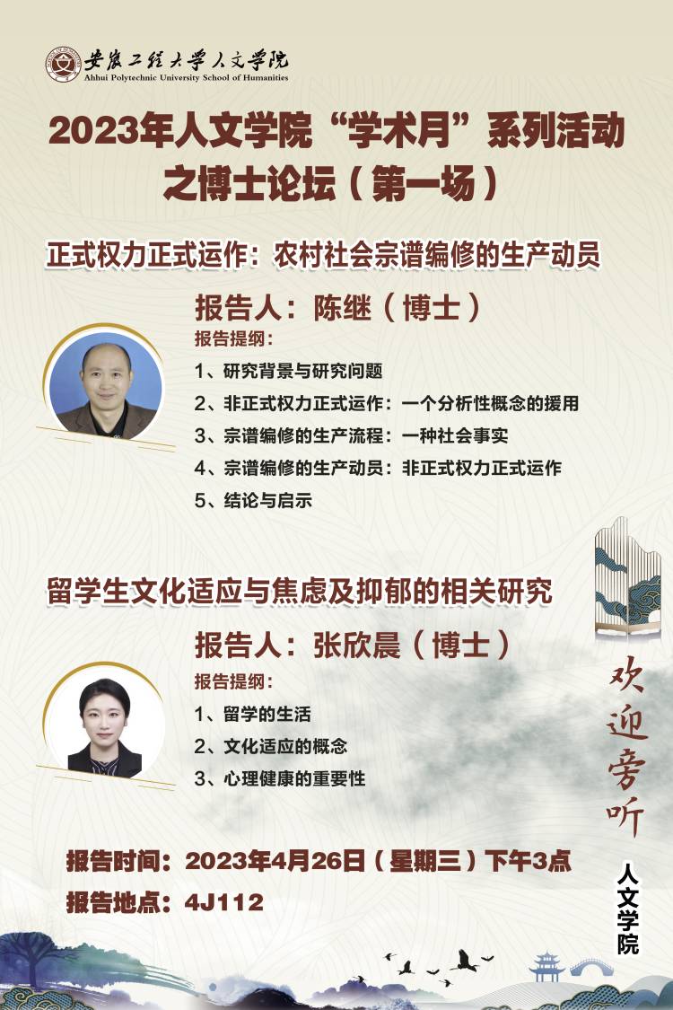 2023年第39场学术报告预告:人文学院学术报告