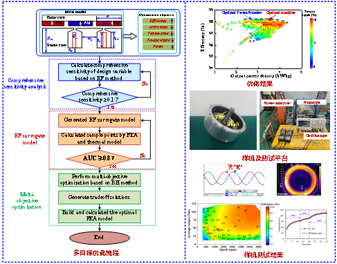 特种车辆对驱动和发电系统的功率密度提出了更严苛的需求,针对特种车辆增程发电系统,研究成果创新地提出了一种集成发动机飞轮壳的外转子永磁起动发电机拓扑结构和高效冷却方法,在此基础上,将随机森林算法和黑洞算法相结合,考虑温度和电磁特性,对外转子永磁起动发电机进行多目标优化;结果表明,与传统增程发电系统相比,在相同条件下电流密度提高了45.1%,效率提高了3.2%。最后,面向3.0T特种运输车辆的增程发电系统,研制了一台25kW的工程样机,最高效率达95%,功率密度达1.53kW/kg。