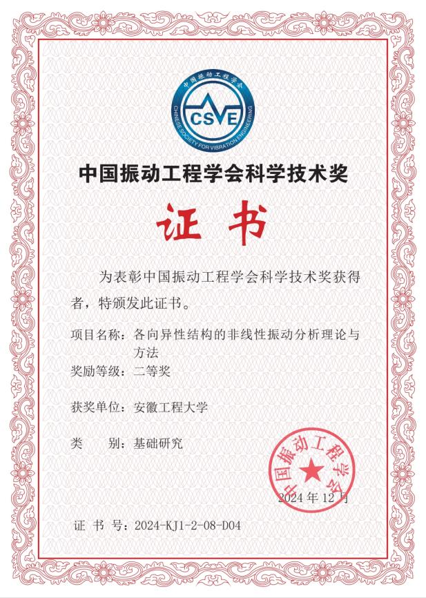 近日,中国振动工程学会公布了2024年中国振动工程学会科学技术奖获奖名单。由我校与东北大学、西北工业大学、天津大学合作申报的成果“各项异性结构的非线性振动分析理论与方法”获中国振动工程学会科学技术二等奖,是我校在力学基础研究领域的一项重要突破。我校设计学院李颖教授团队在这一成果研究中的主要贡献为数字仿真和模拟计算,为工程项目的推演提供了有力的工具支撑,并为工程模拟提供实验数据与修正。