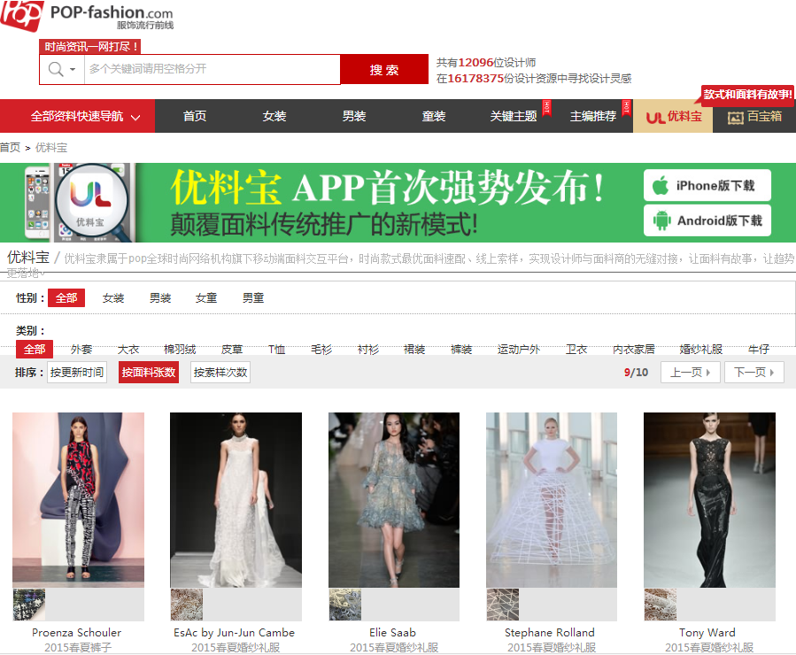 仅仅是互联网的推广资讯往往无法满足设计师在线下的要求,所以pop建立了优料宝APP,让线下与线上的面料与咨讯有机结合。在APP中不仅有齐全的面料库,还拥有面料匹配记录和索样请求记录,智能化的管理与快速地面料匹配是pop在线下APP优料宝上的巨大优势。