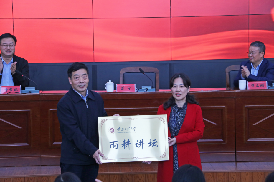 刘宁在致辞中指出,雨耕山旧址对学校意义重大,秉承“实业兴国”理念创办的位于雨耕山的我校前身安徽私立内思高级职业学校,为当时的中国培养了急需的应用型人才,体现着深深的社会责任感和担当精神。雨耕山既是我校的旧址,也是一张现代芜湖的文化名片。讲坛是以雨耕山作名,喻意着我们“不忘初心,不忘来时路”,在文化的传承上做好开拓创新。他希望通过“雨耕讲坛”这一平台,为广大师生提供一个陶冶性情,提升品位的机会,为主讲嘉宾提供一个分享他们的智慧和阅历的舞台,并鼓励我校学子通过“雨耕讲坛”,汲取知识,以学养人,成为道德修养与文化素养全面发展的人才。