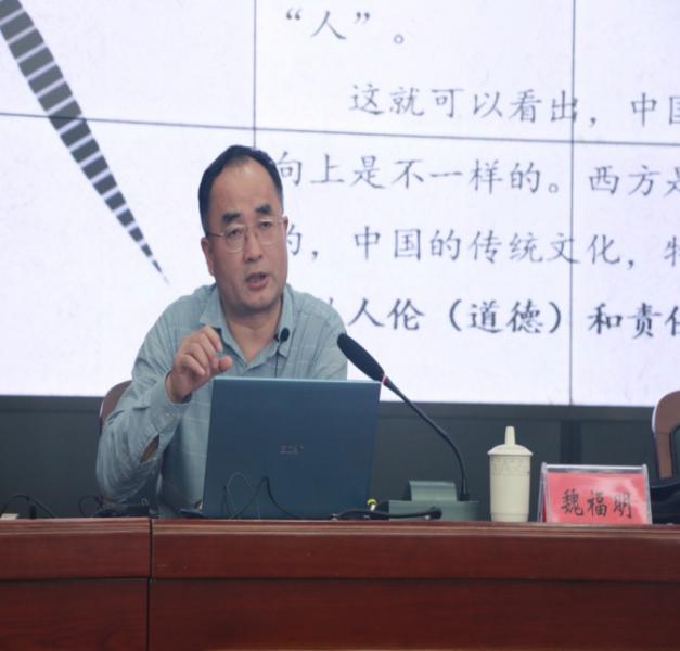 魏福明老师指出,党的十八大以来,以习近平同志为核心的党中央高度重视中华优秀传统文化的传承发展,始终从中华民族最深沉精神追求的深度看待优秀传统文化。魏福明提出“修身齐家治国平天下”的思想是儒家学说的精髓所在,同时也是中华优秀传统文化的精髓。他认为在某种意义上,儒学也可以归结为人学,它的主要思想概括起来就是“何谓人”、“如何做人”和“做一个什么样的人”,几千年来,儒家的这些关于人生的理论,深深地影响了中华民族,成为了我们民族的精神家园,构成了中华民族区别于其他民族独特的精神标识。
