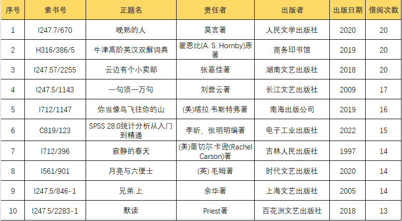 为了有效了解读者阅读情况,分析读者阅读行为,掌握读者阅读需求,为图书馆的资源建设和读者服务提供参考和依据,进一步提升服务质量,图书馆对2023年的图书借阅、电子资源与空间资源的使用情况进行了整理,并发布《2023年阅读报告》。