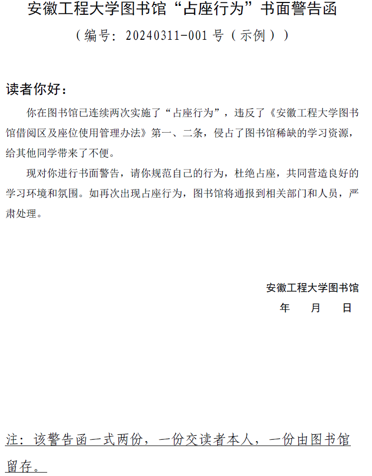RayBetApp官网下载 图书馆“占座行为”书面警告函