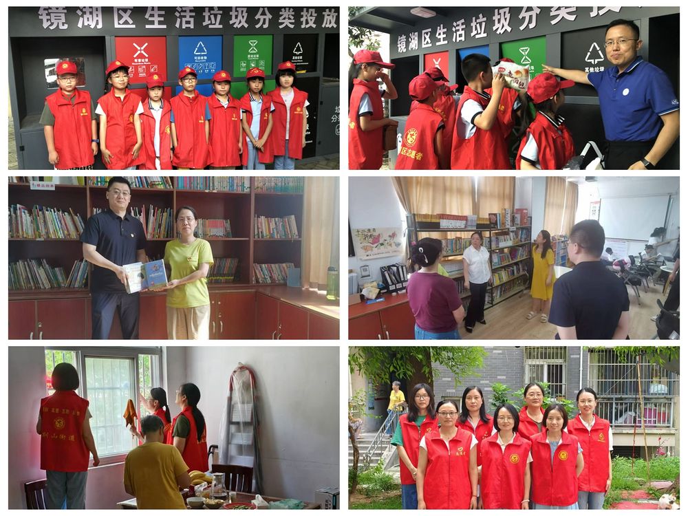 7月5日,支部副书记、图书馆副馆长王中江在镜湖区红梅新村社区为芜湖师范附小的小学生开展垃圾分类知识培训,通过现场讲解、演示和协助,帮助孩子们树立环保意识,掌握垃圾分类的正确方法。8月11日,支部书记、图书馆馆长李琛和张义、张彤彤、倪蓓蓓三位科室负责人前往弋江区中南街道滨江社区公益书屋,进行了图书捐赠,并就书屋的图书管理和借阅工作进行了专业指导。此外,支部委员倪珏与6名党员同志携手前往镜湖区棠梅社区,为社区老人提供上门打扫室内卫生服务,让老人们感受到了来自社会的温暖和关怀。支部党员苏娟则利用自身在图书馆工作的专业技能,为万春街道代垛社区规划整理了社区书屋,使书屋的藏书更加有序,阅读环境更加温馨。同时,支部委员李丽、刘克涛和党员孙梅、胡皓娟等同志也分别在所在社区开展了公共卫生清理和环境整治工作,他们手持扫帚、拖布等工具,对社区内的道路、绿化带、公共设施等进行清洁,改善了社区的环境卫生状况,提升了居民的居住体验。