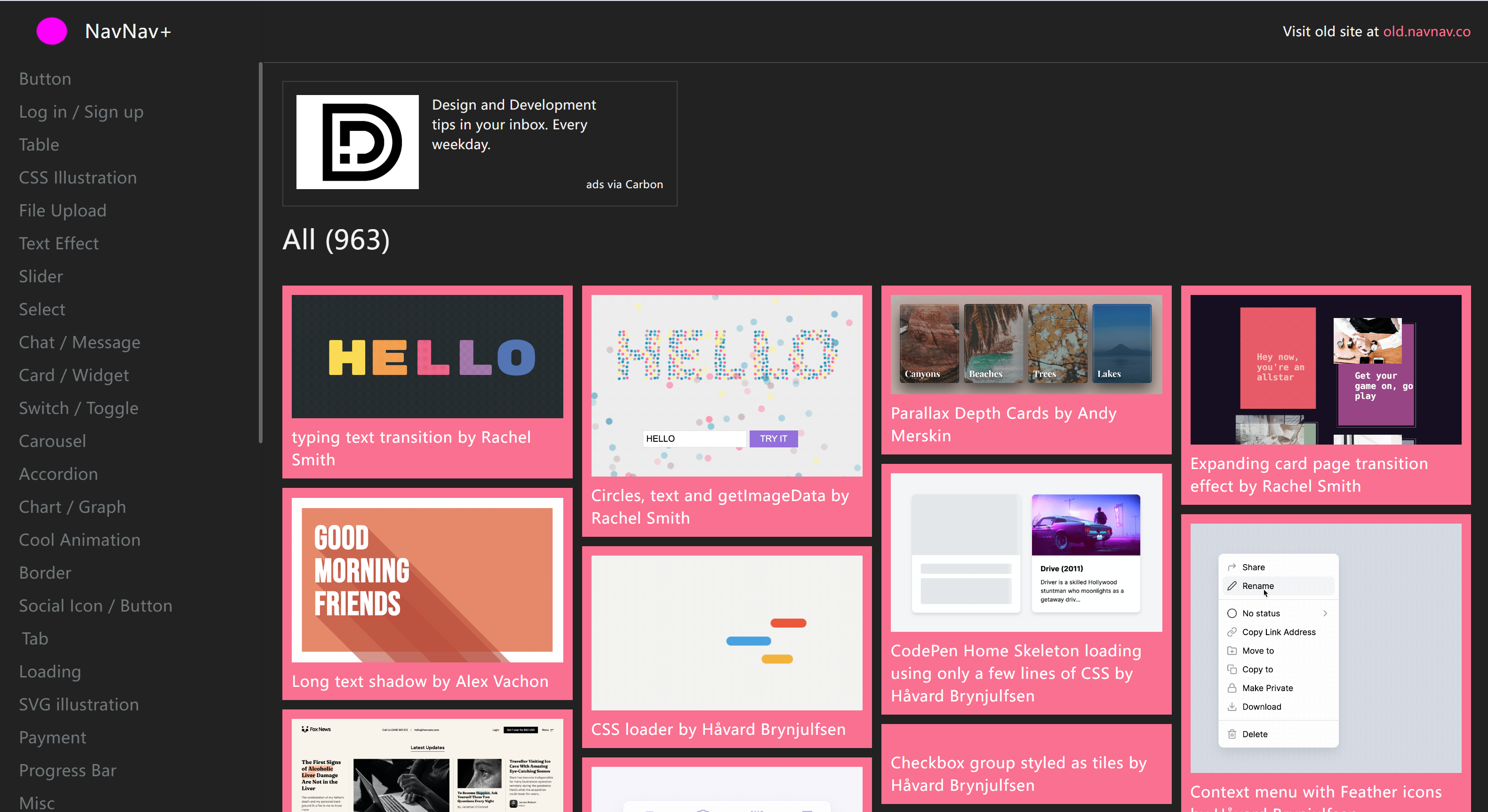 NavNav+ 为用户提供不同元件的导航设计创意,你也可以在这里分析用户浏览网站或应用进程的方式。导航设计对于网页设计、手机 app 开发…等来说非常重要,因为导航列的架构设计越完善其实就代表