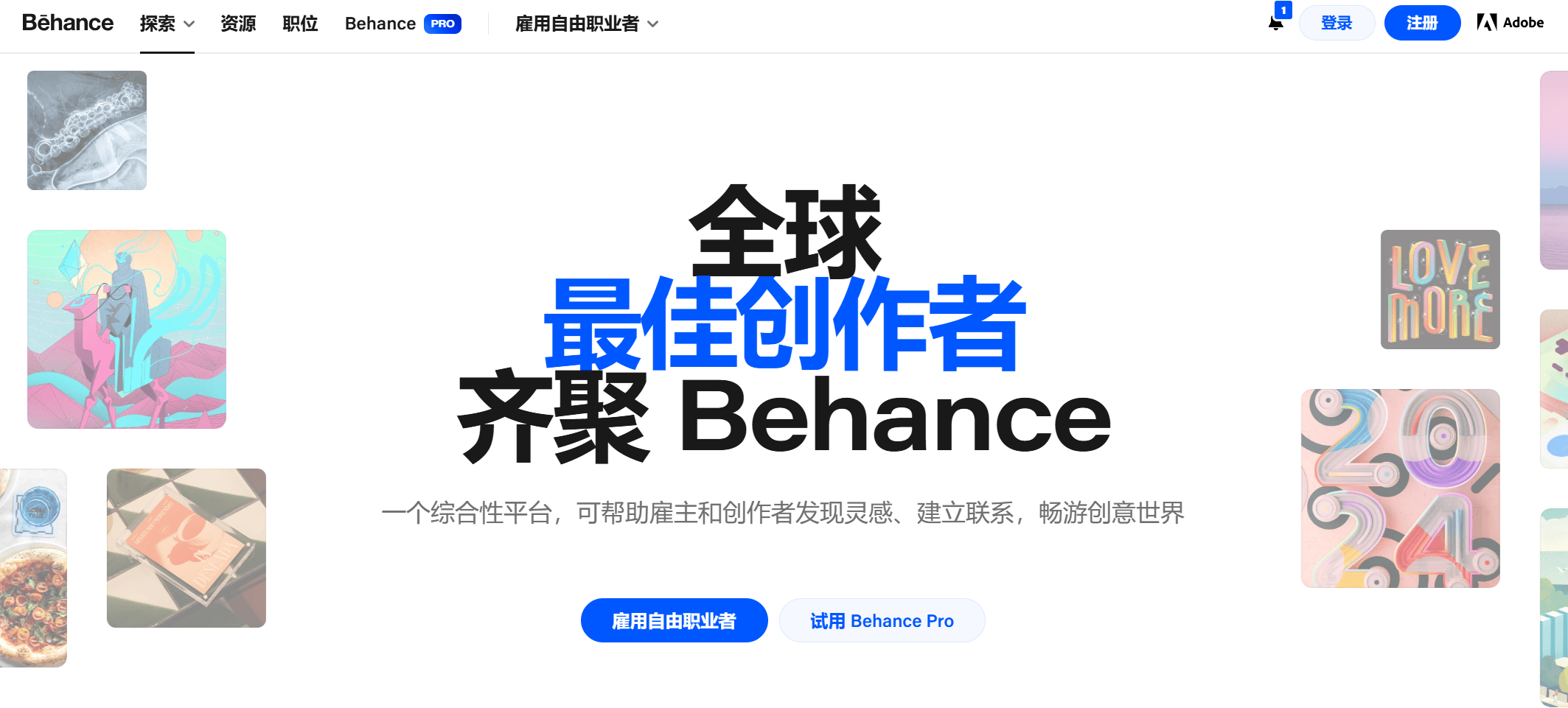 Behance是一个展示和发现创意作品的平台,设计作品类型广泛,包括平面设计、UI/UX设计、插画等。