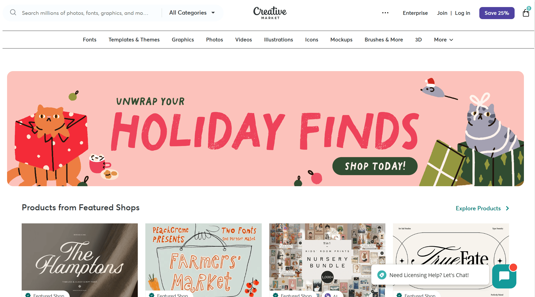 Creative Market提供高质量的设计资源,如插图、字体、图标、模板等。
