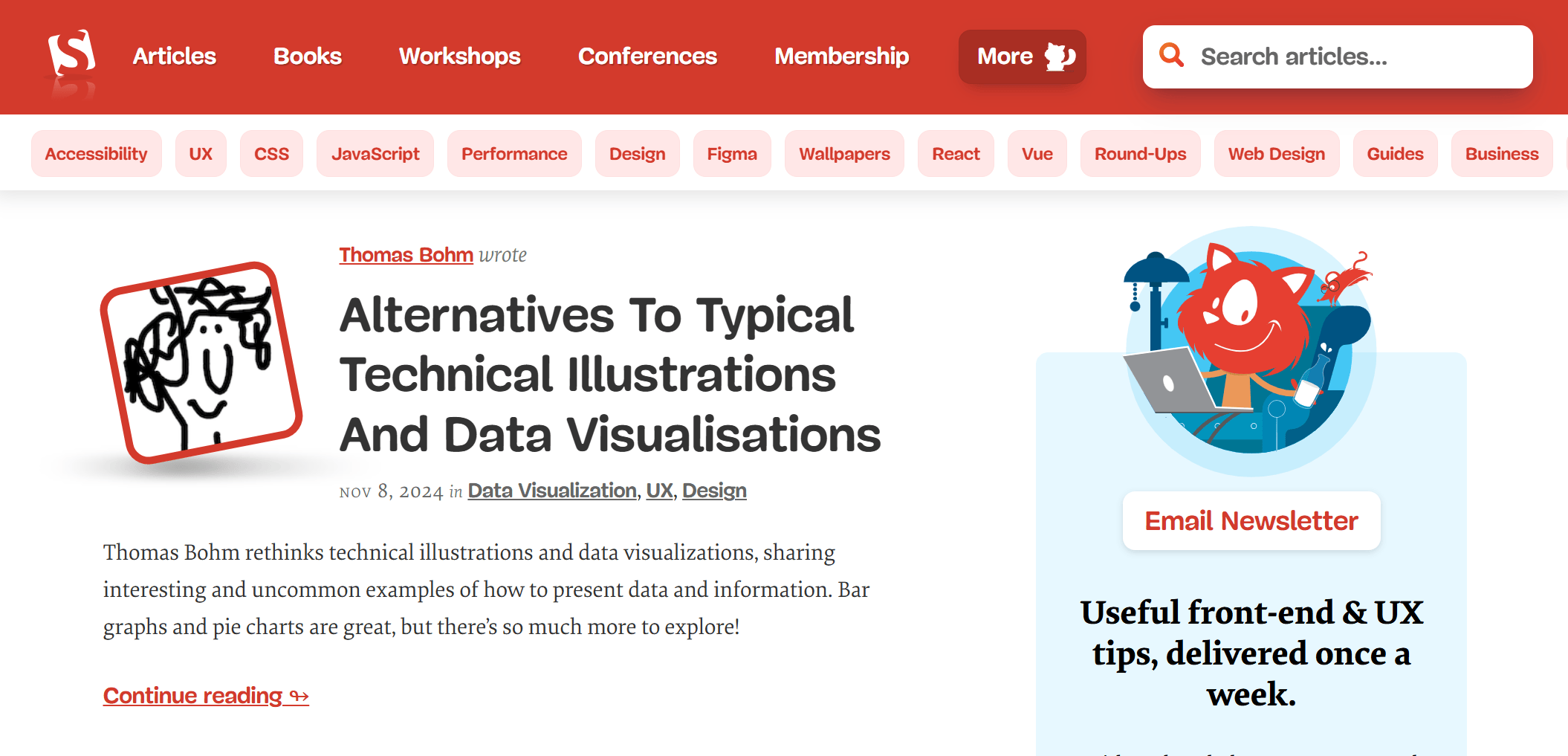 Smashing Magazine是设计和开发专业人士的在线杂志,提供网页设计、用户体验和前端开发的文章和教程。