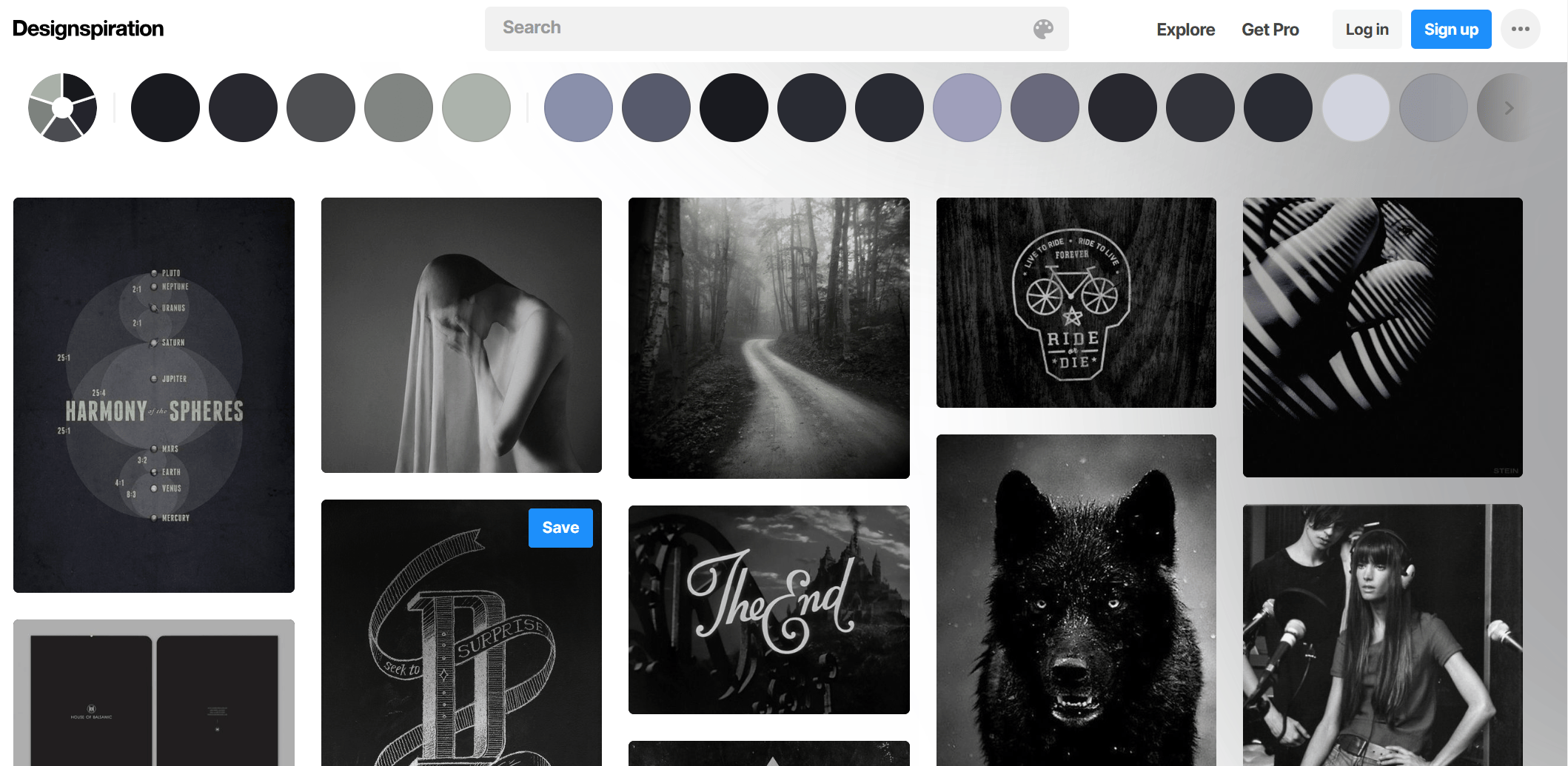 Designspiration与Pinterest类似,展示来自各领域的设计作品,包括平面设计和网页设计等。
