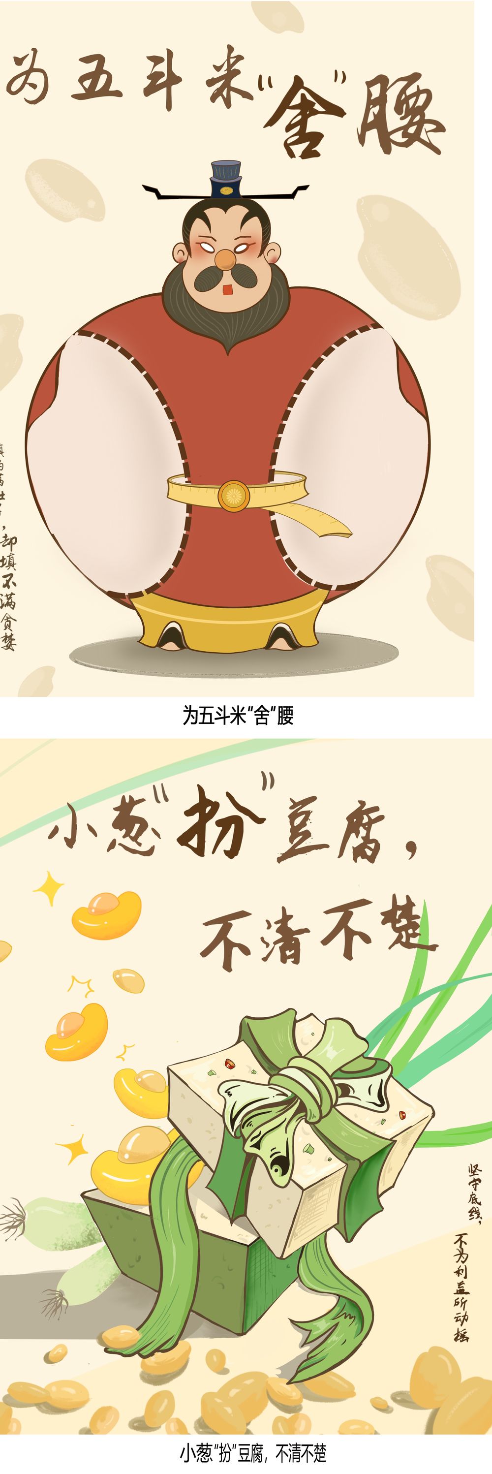 【漫画/平面公益广告】为五斗米“舍”腰和小葱“扮”豆腐,不清不楚
