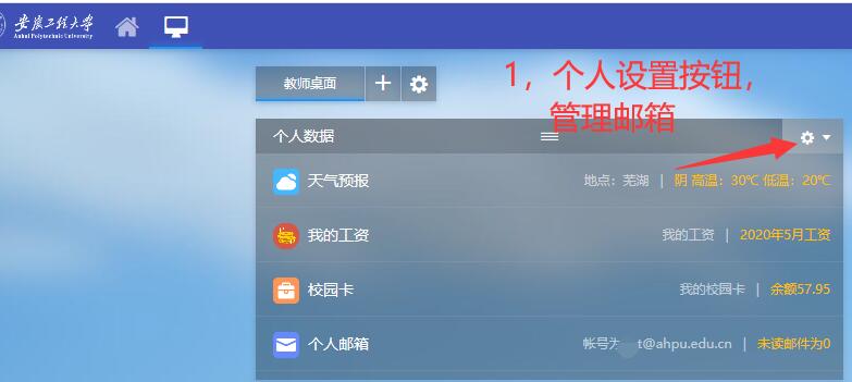 (2)教师个人:可以申请域名为 @ahpu.edu.cn(限申请一个)和@mail.ahpu.edu.cn的邮箱,请进入校园网首页——校园服务——网上办事——办事流程——第二条“个人邮箱申请”,申请后,请及时修改密码,并按照第四条及时绑定。