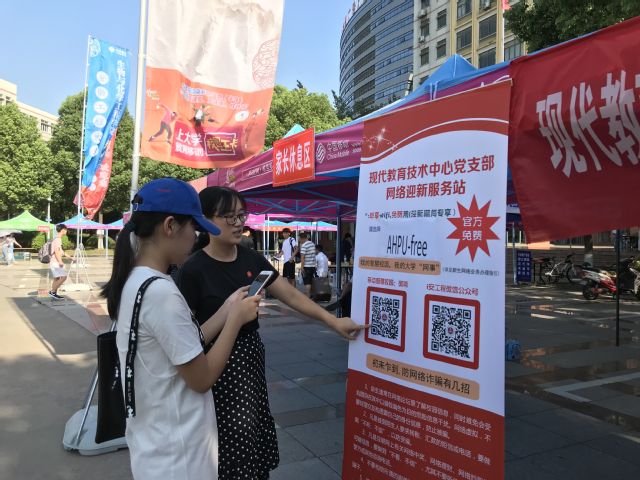 现代教育技术中心“网络迎新服务”设立了党员服务站,安排党员和专业人员轮流值班,开展新生及其家长免费无线网络畅享服务、新生网络开户办理咨询服务、校园移动平台“微哨”使用服务、智慧校园与智慧学习宣传服务等多项工作,引导新生更好地利用智慧校园和智慧学习平台,帮助其解决在学习生活中遇到的类似网络故障、密码丢失、课表及成绩查询等问题,同时积极帮助解决新生及其家长在迎新报到中遇到的其它问题,落实“有困难找支部,有问题找党员”的帮扶机制。