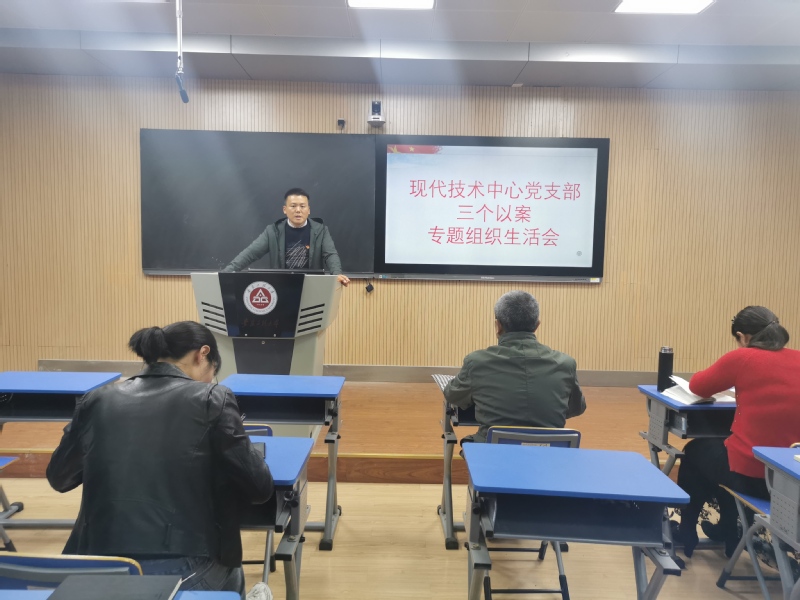 为深入推进党史学习教育和新一轮深化“三个以案”警示教育,认真落实学校党委及教辅总支的的工作安排,现代技术中心党支部于4月21日下午召开了党支部大会,通过主题党课、集中学习等方式开展党史学习教育,同时召开了新一轮深化“三个以案”警示教育专题组织生活会。会议由支部书记冒国兵主持,全体党员参加会议。